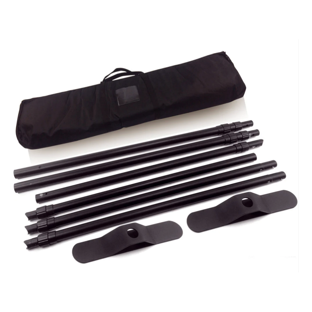 Adjustable telescoping poles (1.625″ diameter) for multiple size options
